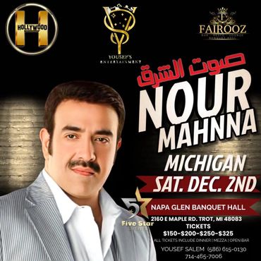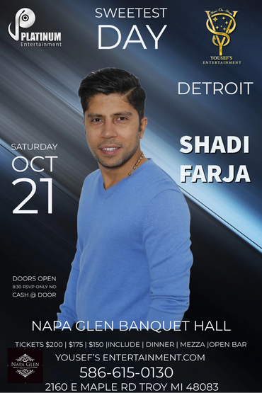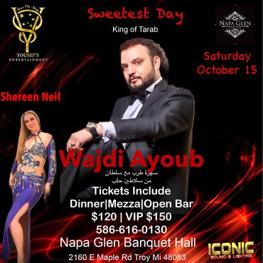 Yousef Entertainment takes artists from around the world to share their love of music with everyone. We achieve family type atmospheres every concert we do. Yousefs entertainment has been planning events for 30 years. Yousef himself is an outgoing and lovely person. Also, he treats his costumers like his family and does things like no other. Yousef Salem has been promoting events and parties since the 90's started in San francisco, Ca. Since relocating to the metro Detroit area in 2004 has successfully held great parties with unique artists and atmosphere.